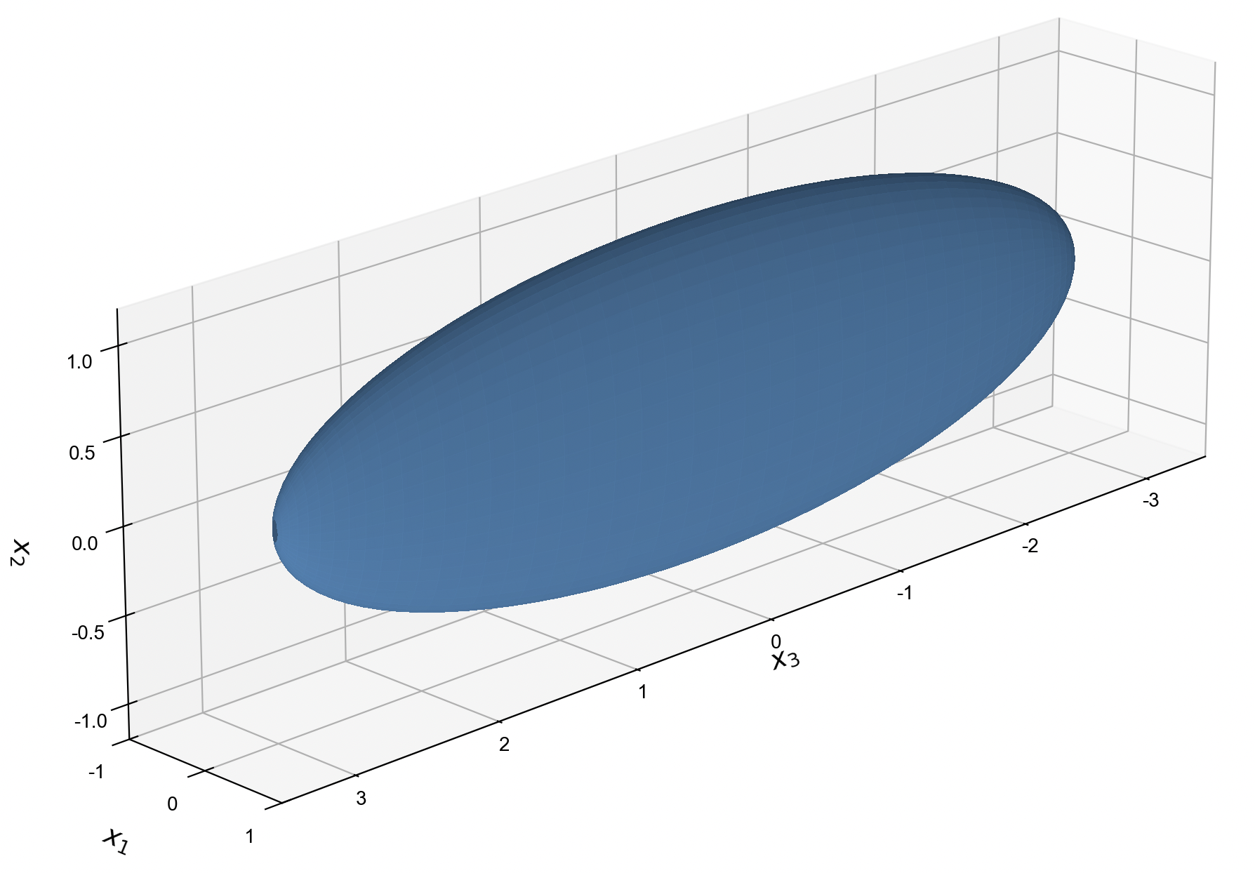 • $x_3$ 方向的半軸長:$\frac{1}{\sqrt{1/9}} = 3$