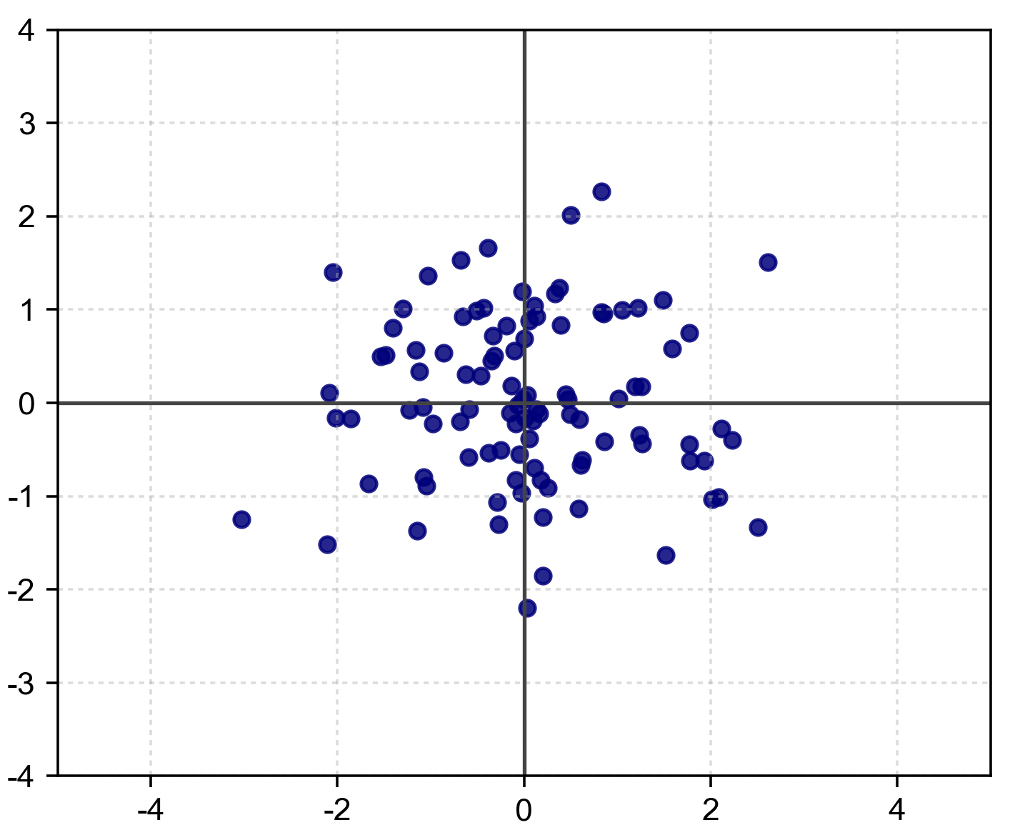 假設有一個二維標準高斯,其均值在原點,且共變異數矩陣為單位矩陣: